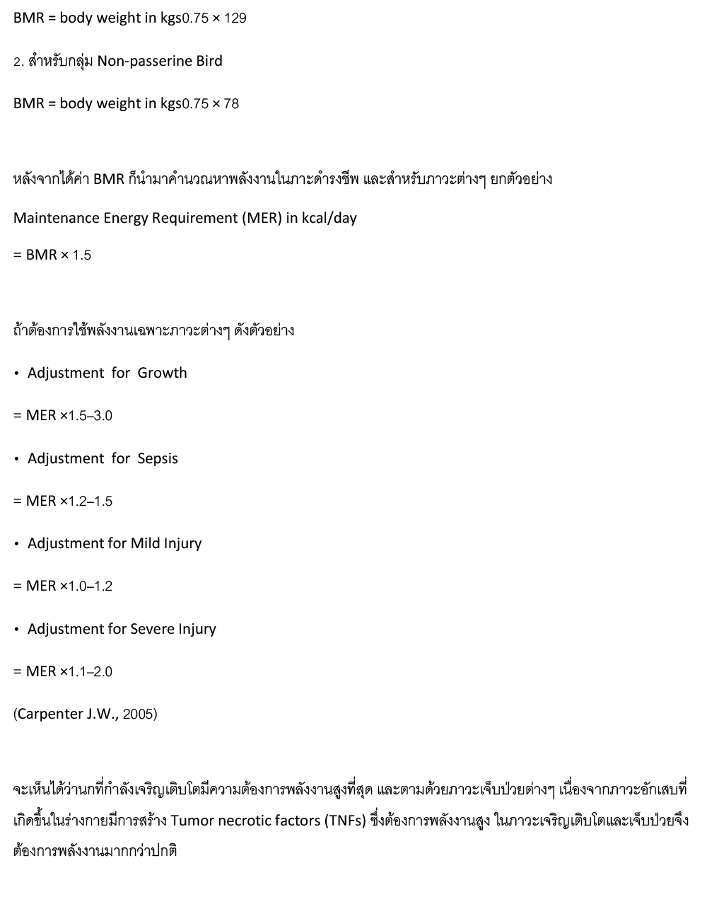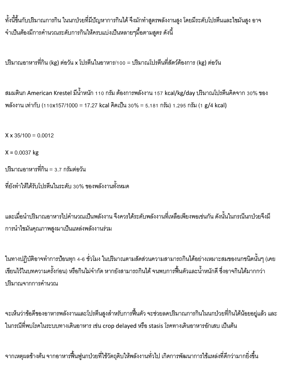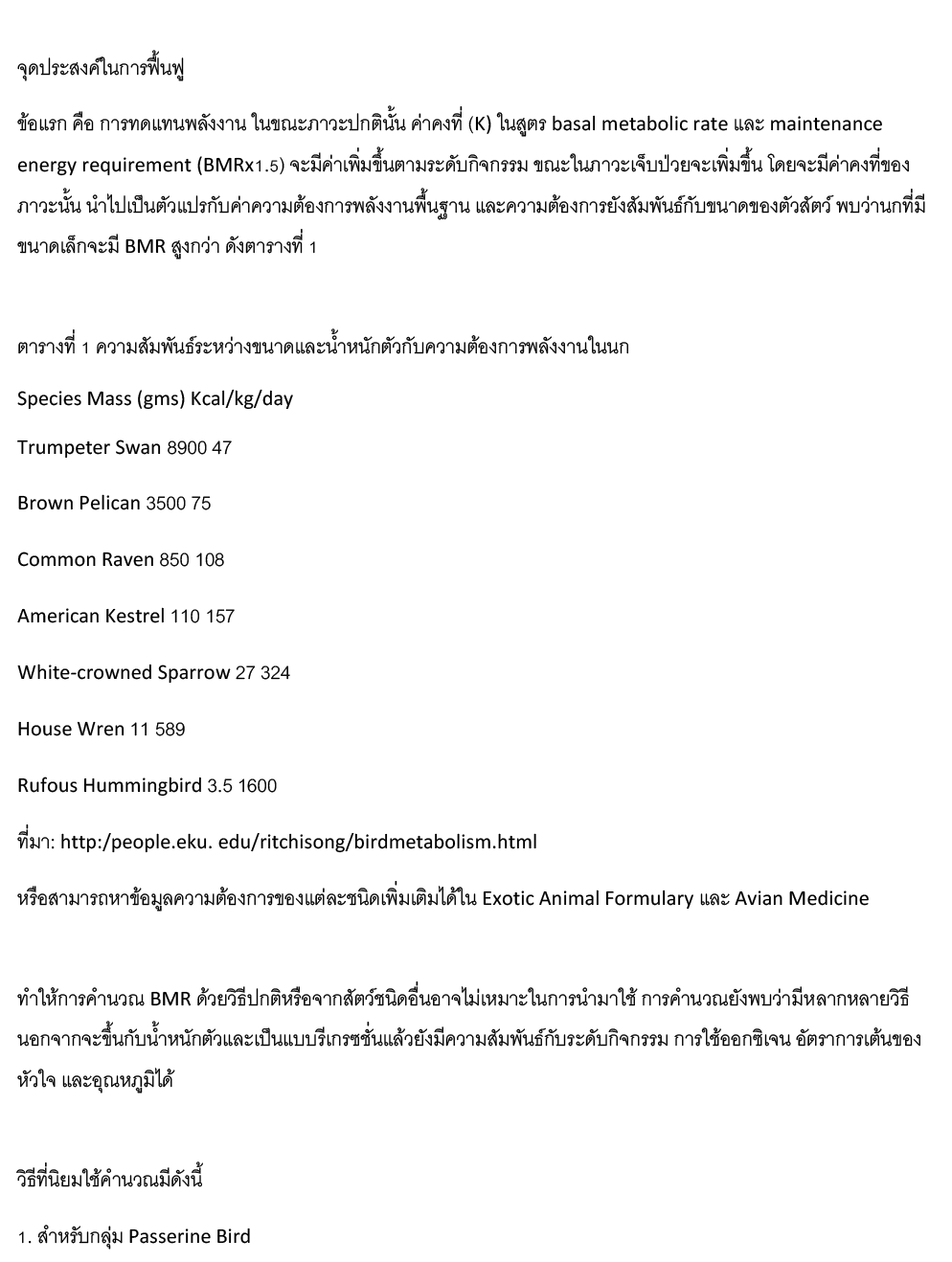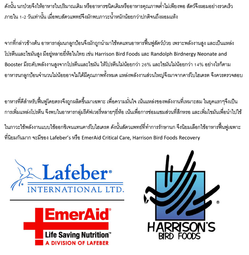 การเสริมอาหารให้นกป่วย EP1. การคำนวณพลังงานและแหล่งพลังงาน