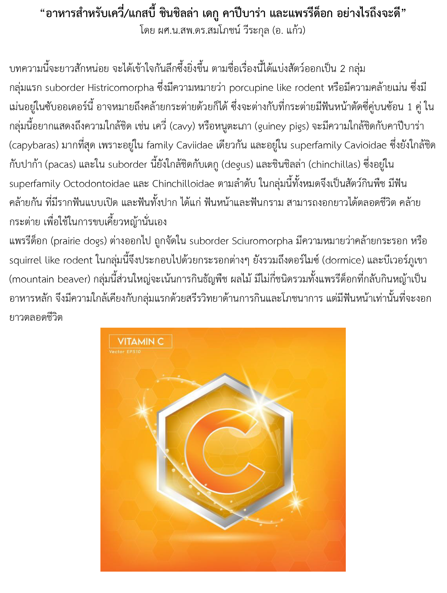 โดย สพ.ญ.ศุภวัลย์ ศรีวิเศษ (หมอบุษ) และ ผศ.น.สพ.ดร. สมโภชน์ วีระกุล (อาจารย์แก้ว)