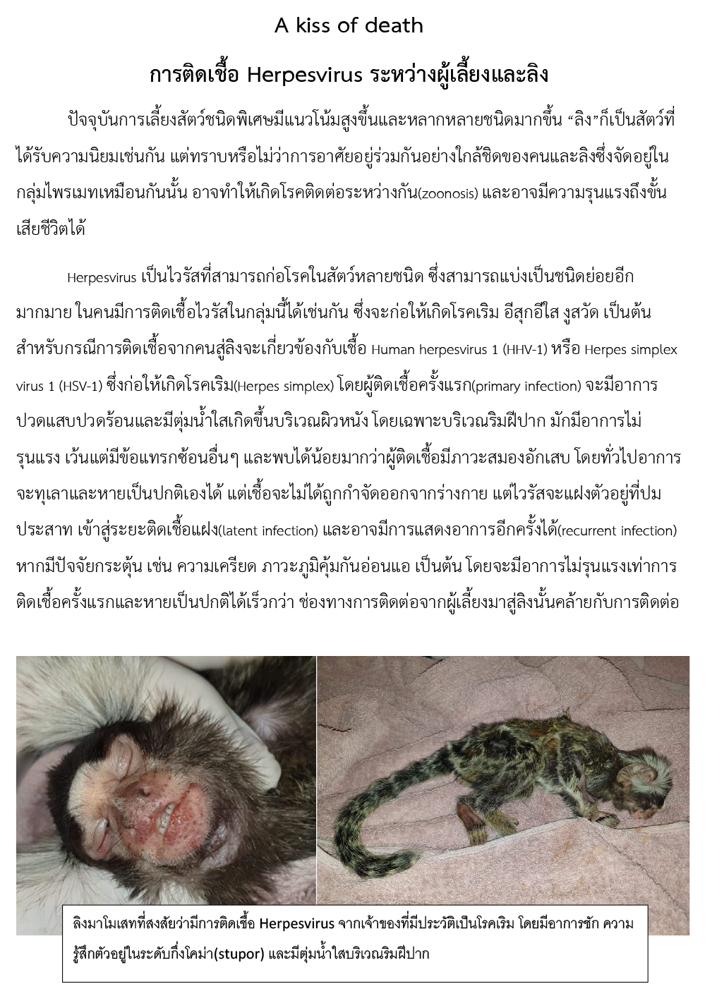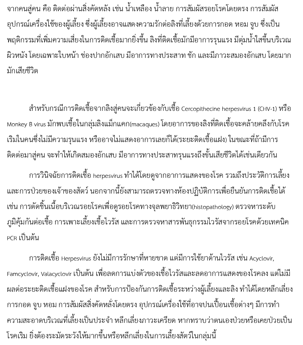 การติดเชื้อ Herpesvirus ระหว่างผู้เลี้ยงและลิง