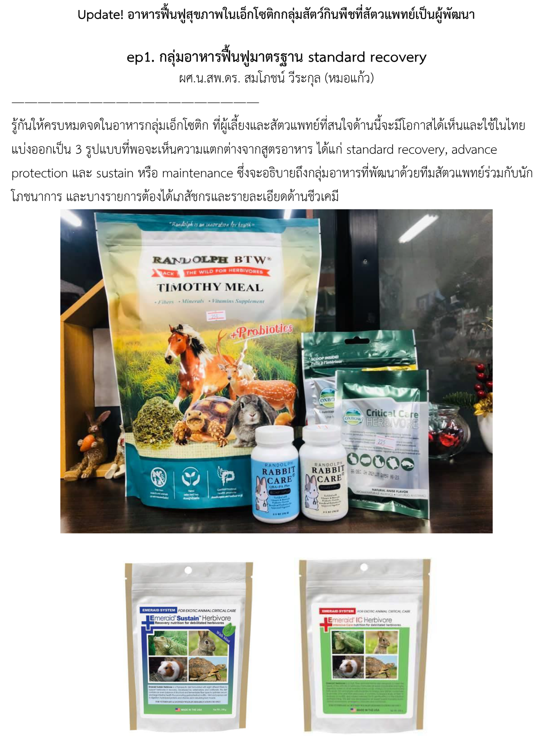 ep1. กลุ่มอาหารฟื้นฟูมาตรฐานในเอ็กโซติกกลุ่มสัตว์กินพืช standard recovery