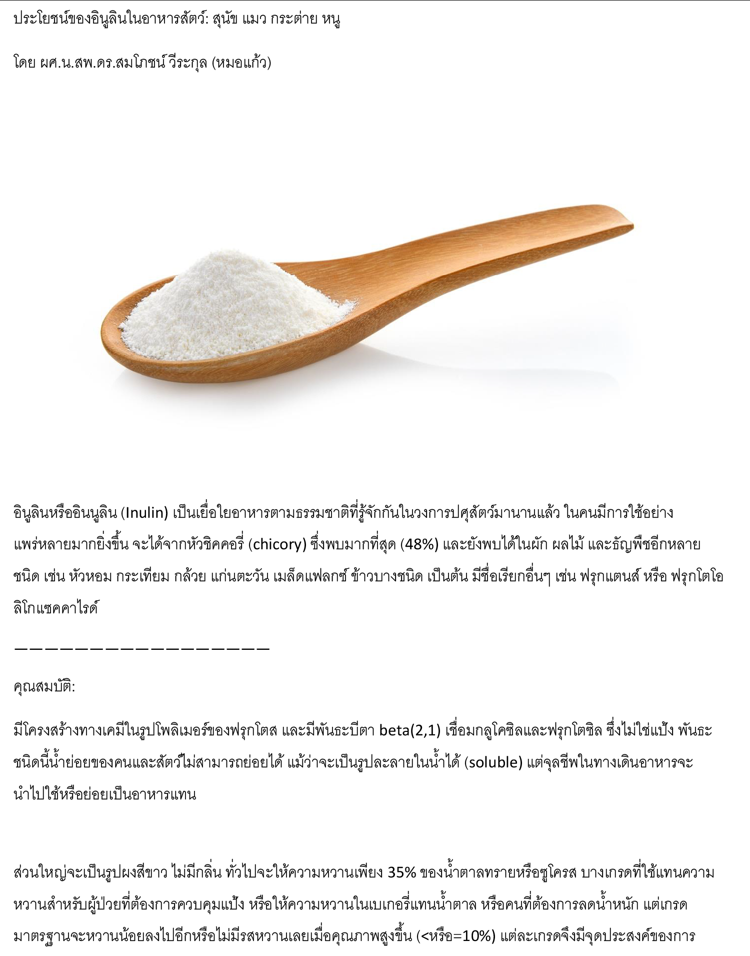 ประโยชน์ของอินูลินในอาหารสัตว์: สุนัข แมว กระต่าย หนู