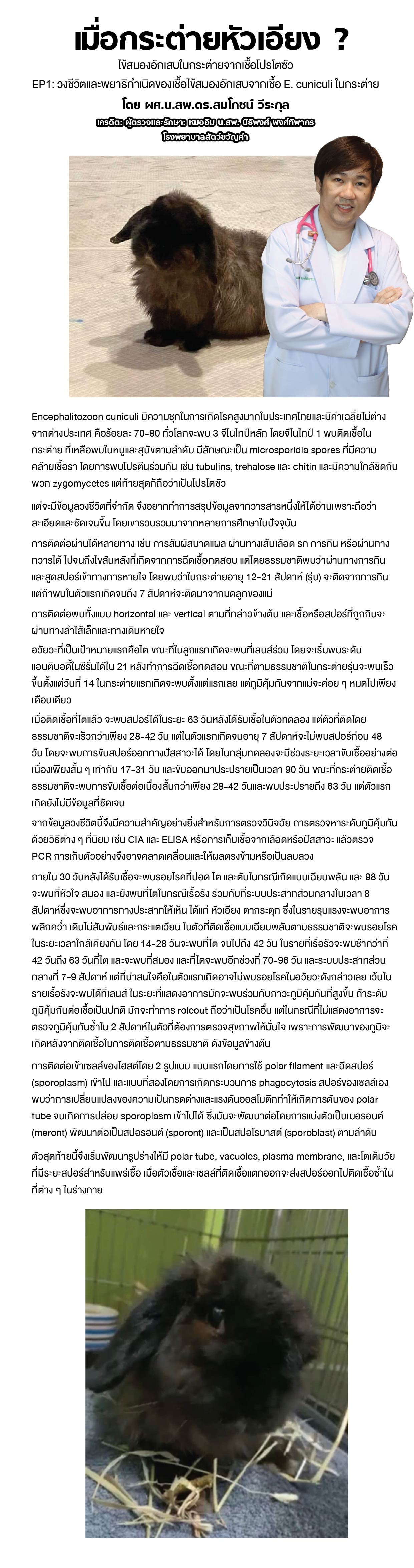 เมื่อกระต่ายหัวเอียง? ไข้สมองอักเสบในกระต่ายจากเชื้อโปรโตซัว EP1: วงชีวิตและพยาธิกำเนิดของเชื้อไข้สมองอักเสบจากเชื้อ E. cuniculi ในกระต่าย