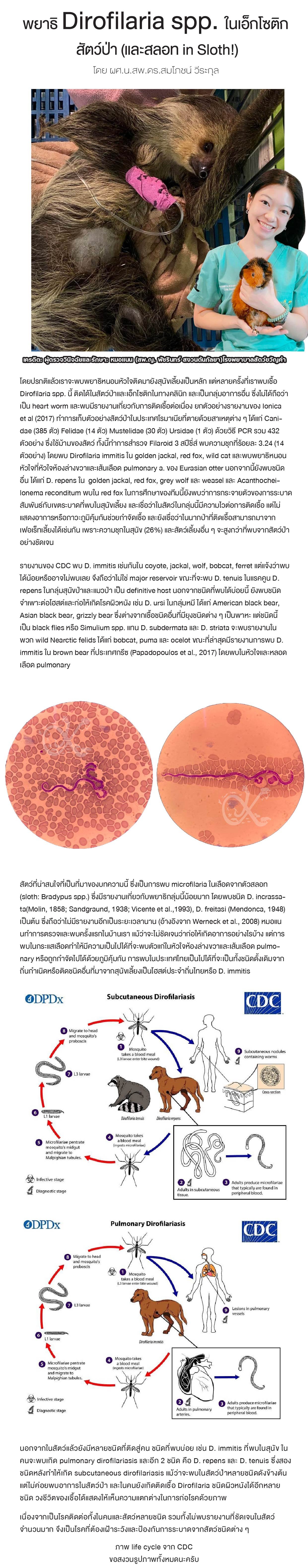 พยาธิ Dirofilaria spp. ในเอ็กโซติก สัตว์ป่า (และสลอท in Sloth!)