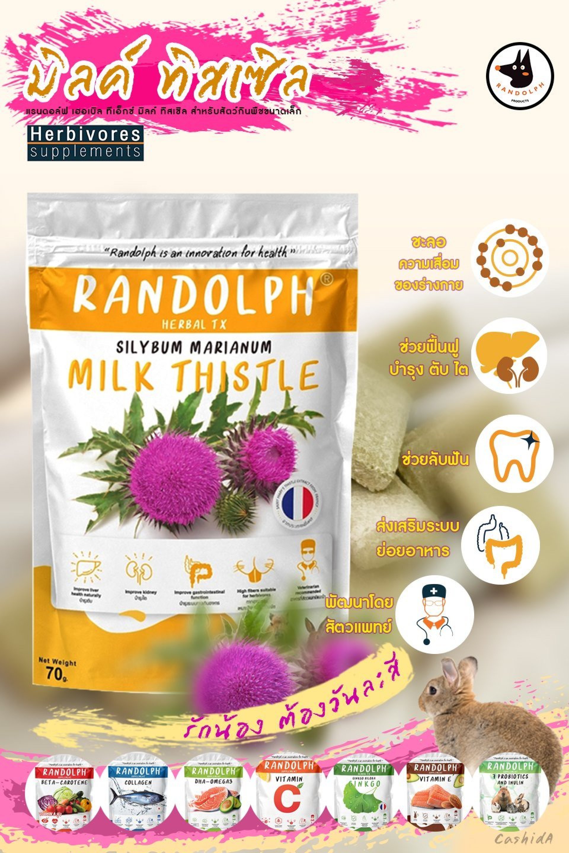( แรนดอล์ฟซัพพลีเม้นท์ MILK THISTLE สำหรับสัตว์กินพืชขนาดเล็กทุกชนิด )