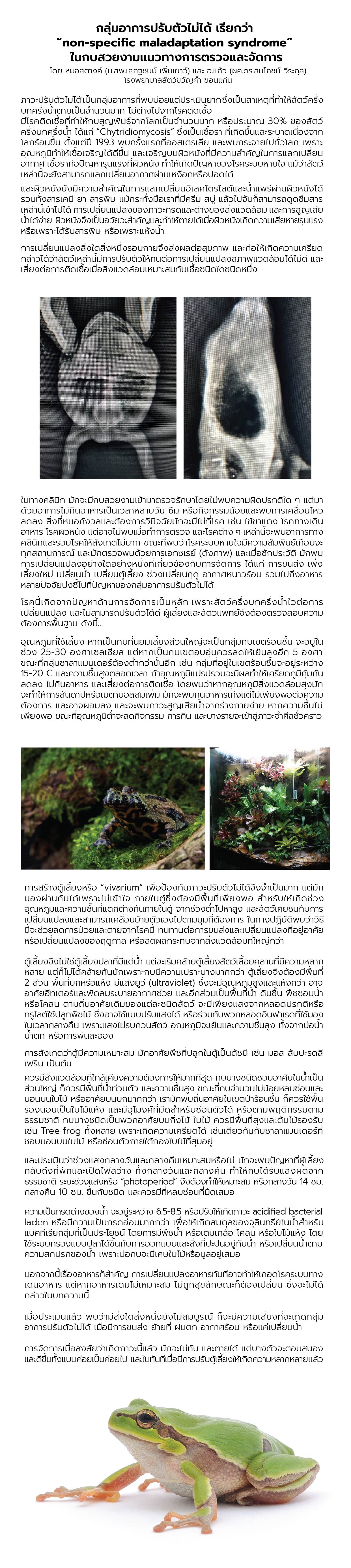 กลุ่มอาการปรับตัวไม่ได้ เรียกว่า "non-specific maladaptation syndrome" ในกบสวยงามแนวทางการตรวจและจัดการ