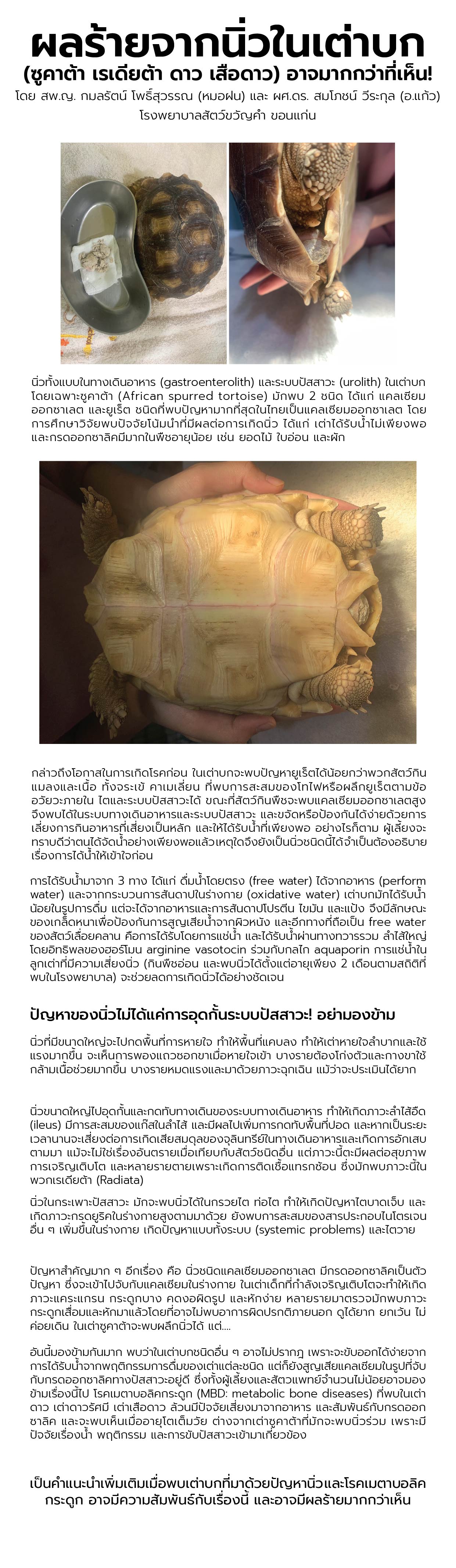 ผลร้ายจากนิ่วในเต่าบก (ซูคาต้า เรเดียต้า ดาว เสือดาว) อาจมากกว่าที่เห็น!