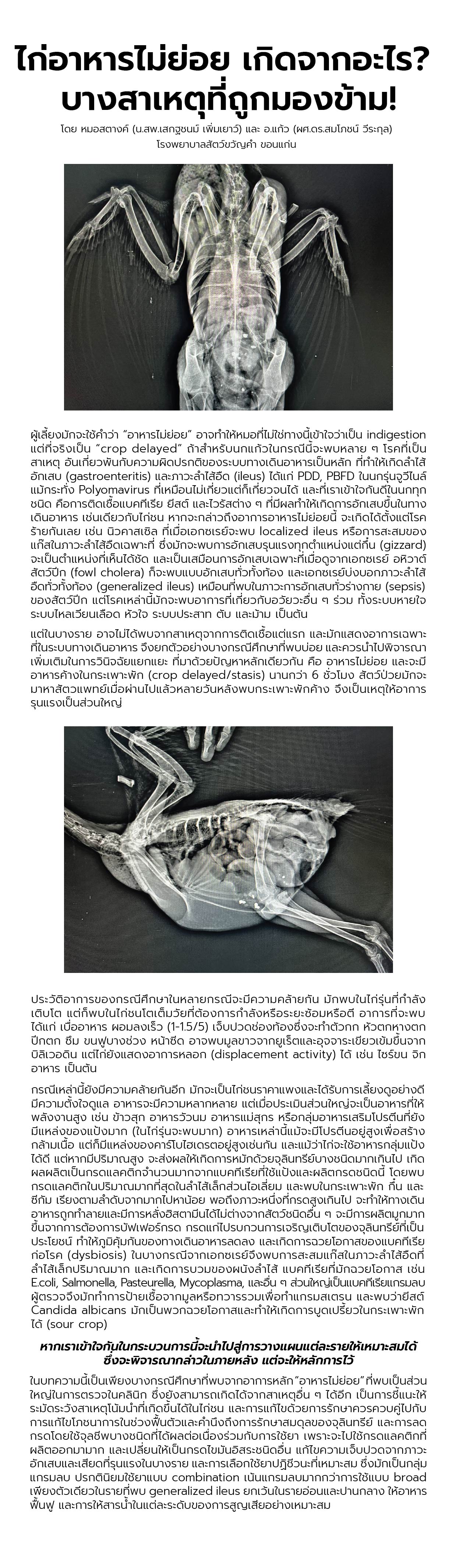 โดย สพ.ญ.ศุภวัลย์ ศรีวิเศษ (หมอบุษ) และ ผศ.น.สพ.ดร. สมโภชน์ วีระกุล (อาจารย์แก้ว)