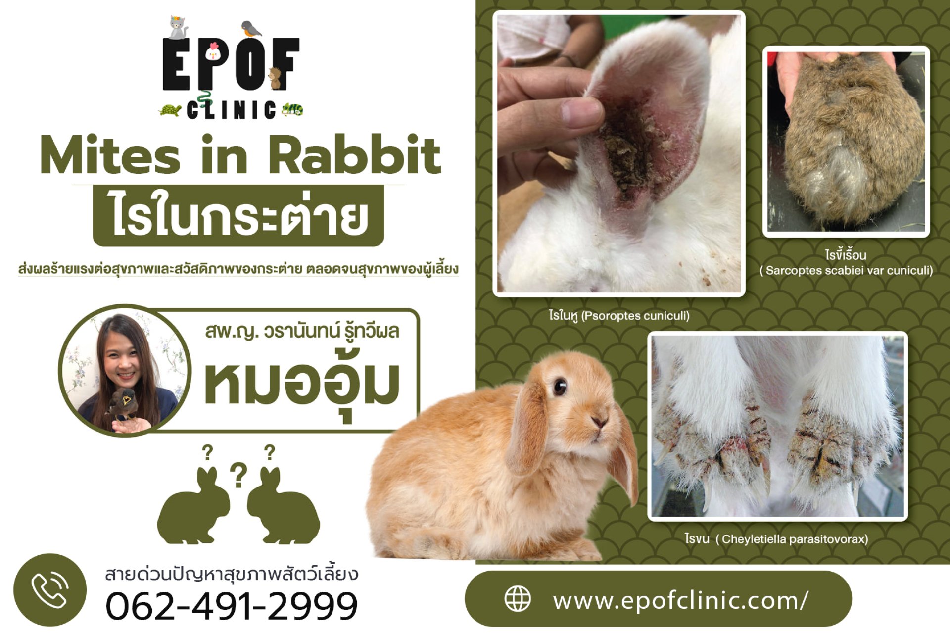 หากว่าด้วยปรสิตภายนอกที่พบมากในกระต่าย หนีไม่พ้นปรสิตในกลุ่ม ไร (mites) ทำให้กระต่ายมีอาการคัน ผิวหนังเป็นสะเก็ด และเกิดการอักเสบของผิวหนัง มีทั้งชนิดที่ไม่ก่อและก่อให้เกิดอาการทางคลินิก ชนิดที่ก่อโรคนี้จำเป็นต้องได้รับการวินิจฉัยและรักษาตั้งแต่เนิ่น ๆ หากล่าช้า อาจส่งผลร้ายแรงต่อสุขภาพและสวัสดิภาพของกระต่าย ตลอดจนสุขภาพของผู้เลี้ยง